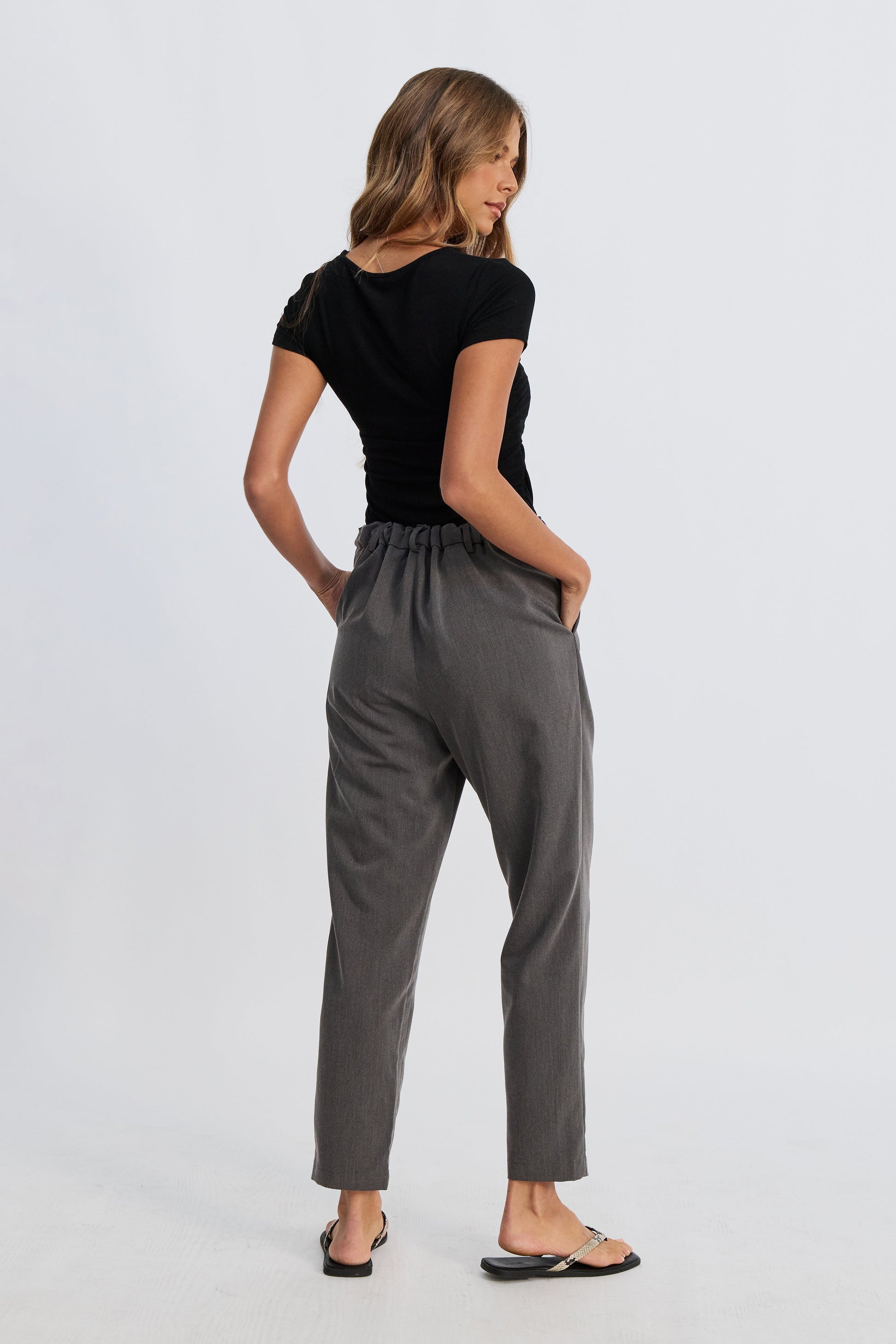 Sara Adjustable Waist Tailored Trouser — Grey
